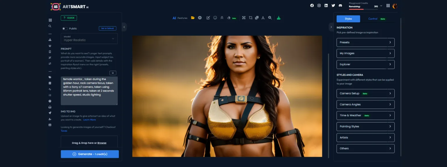 ArtSmart AI is an AI image generator that converts text prompts into realistic images. It offers features such as text-to-image, image-to-image, inpainting, outpainting, background removal, and hyper-realistic modes. The tool is user-friendly, making it accessible even for beginners.